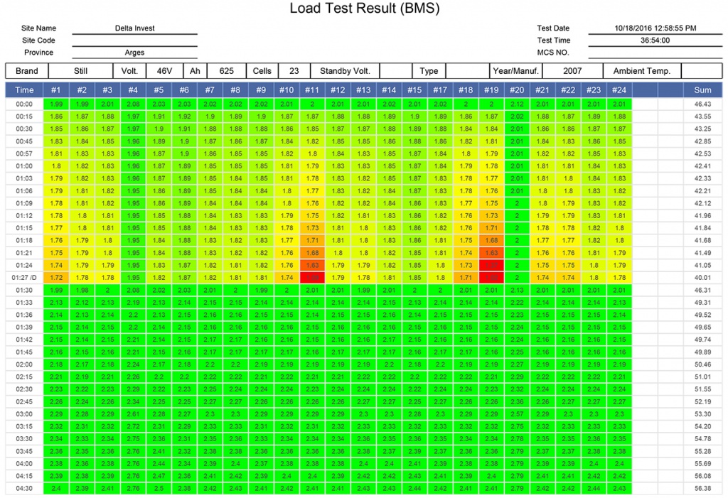 Masuratorile profesionale individuale de tensiune ale tuturor celulelor in timpul unei descarcari complete ofera o evaluare perfecta a bateriei. Sistemele de masurare obisnuite afiseaza numai tensiunea si capacitatea totala a bateriei, dar niciodata rezultatele pe fiecare celula in parte. Cu BMS obtinem o prezentare clara a performantei fiecarei celule, permitandu-ne astfel sa facem o evaluare exacta a acumulatorului.