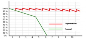 Regenerarea pentru reconditionarea bateriei: ne permite sa regeneram baterii cu o vechime de 5-7 ani, cu o stare de intretinere medie spre buna, care prezinta o sulfatare ce afecteaza 80-90% din capacitatea bateriei, ca si rezultat al procesului natural de sulfatare.
